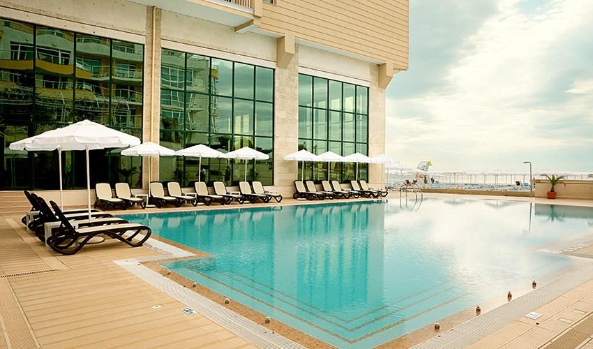 Oblíbený čtyřhvězdičkový hotel Bilyana Beach je určen pouze pro osoby starší 16 let a nabízí kvalitní služby all inclusive, výbornou kuchyni, fitness, wellness centrum s vířivkou, saunou, masážemi a bohatý animační a kulturní program. Nachází se přímo na písečné pláži v docházkové vzdálenosti od centra města Nesebar. Krásné historické centrum starého Nesebaru s množstvím nákupních možností, restaurací a barů je zapsáno v seznamu UNESCO. Tento oblíbený a příjemný hotel doporučujeme párům a všem klientům, kteří mají rádi zábavu a kvalitní služby. |